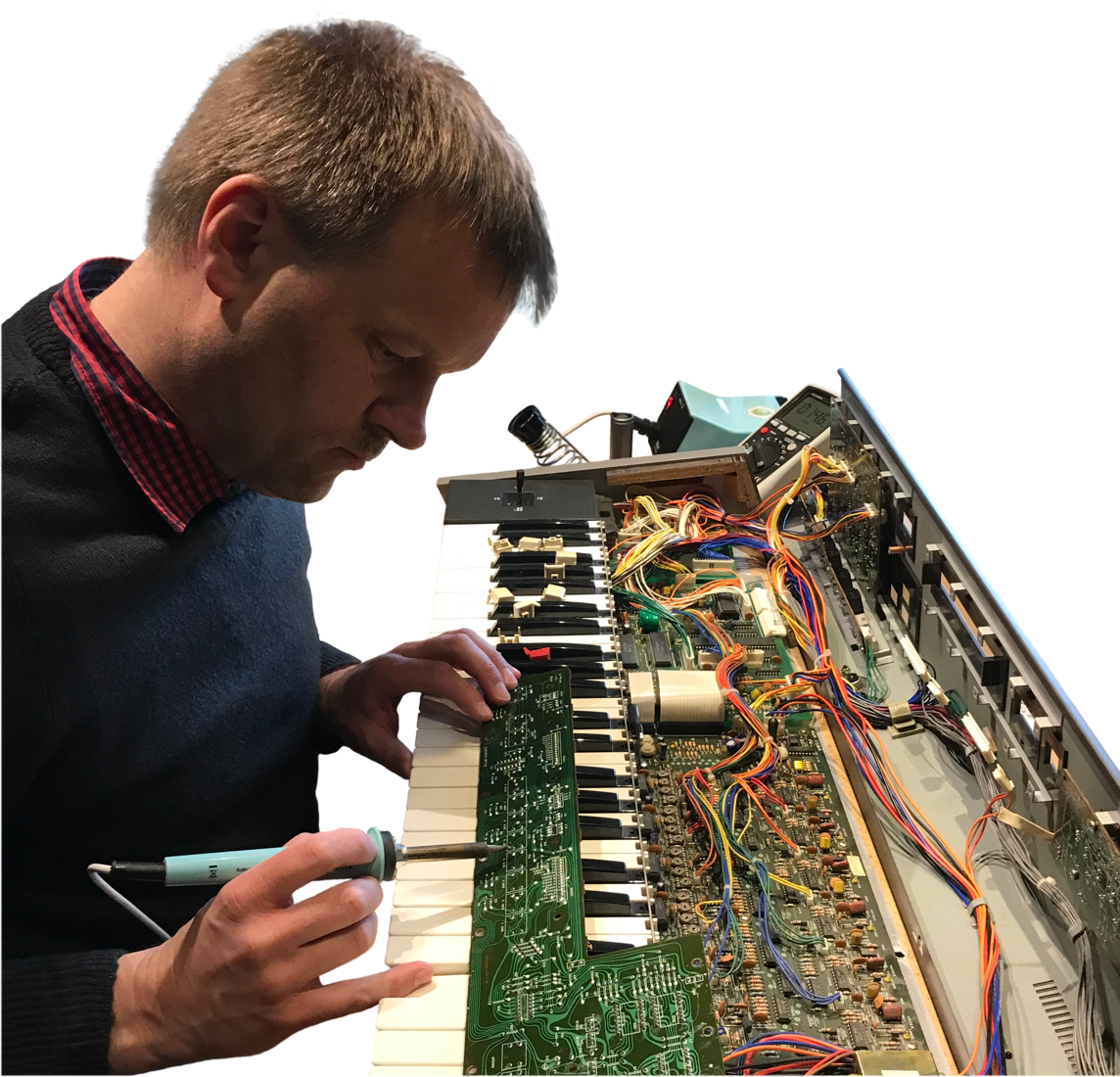Viele der alten Synthesizer werden von uns gewartet oder repariert. Sie bekommen nachträglich eine MIDI-Schnittstelle und können danach mit der heutigen Computerwelt verbunden werden. Wenn dann die ersten Töne erklingen haben wir oft ein zufriedenes Lächeln im Gesicht. Die fachgerechte Justierung aller notwendigen Einstellungen und die Stimmung der Oktaven erfolgt unter Berücksichtigung der vorliegenden Serviceanleitungen. Leider müssen wir darauf hinweisen, dass wir diesen Service ausschließlich nur an unseren Geräten durchführen.